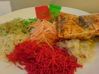 Every tables had one plate of 'yu sang' (Too colourful, dare not eat it :X)